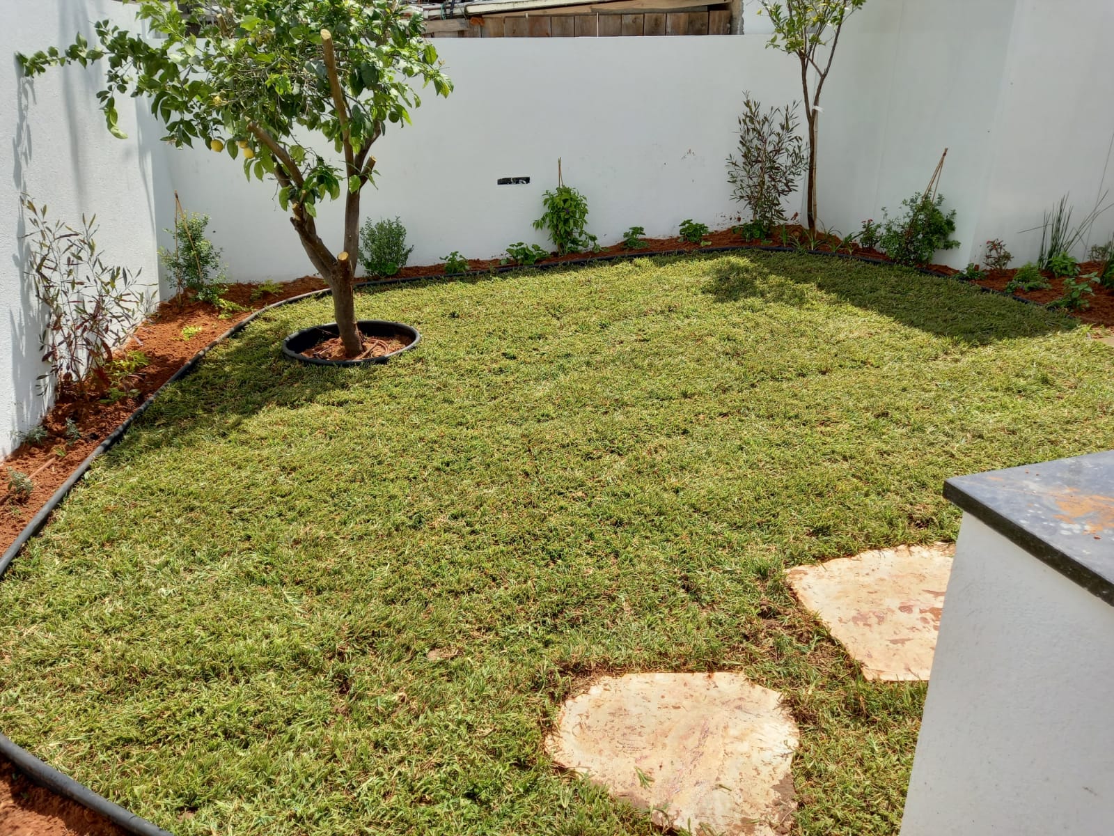 הגינה הנדרשת היתה בגודל של כחצי דונם. העבודה כללה פיתוח, התקנת מערכות השקיה, מדשאות, צמחי נוי, שתילת עצים, ועוד. הפרויקט בוצע בהתאם לתכנית אשר נמסרה על ידי הקבלן.